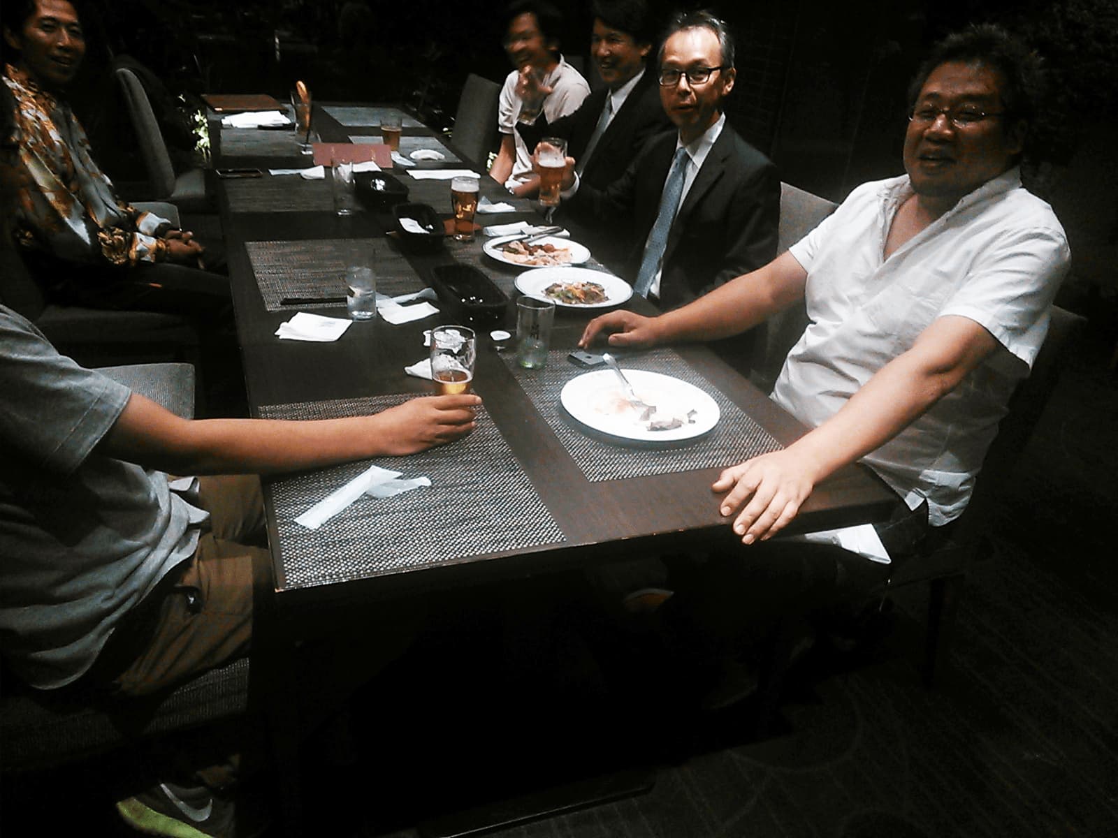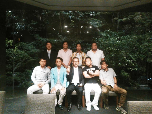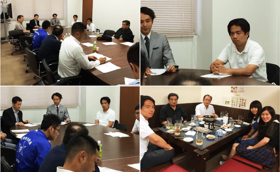 納涼会。ラグビー部、ワンゲル部、化学部音楽部よりOB会代表者と常翔啓光学園本部より内山校友会会長、西田広報室長がお越しくださいました。